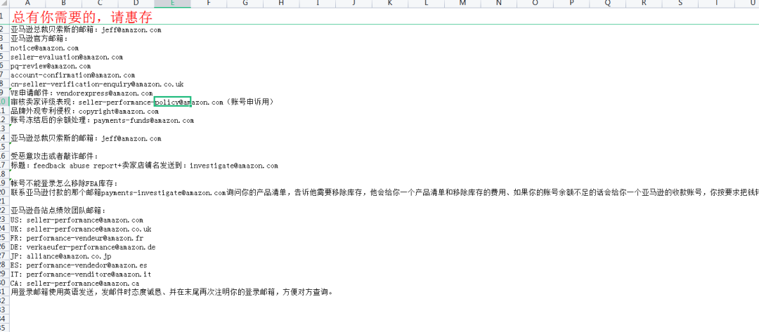 1.《亚马逊官方联系邮箱记录(运营过程中问题解决联系方式)》