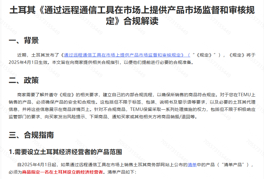 跨境电商:一些跨境电商平台,如TEMU等,要求卖家必须在土耳其指定授权代表,否则可能会面临平台商品下架或合规处罚的风险。
