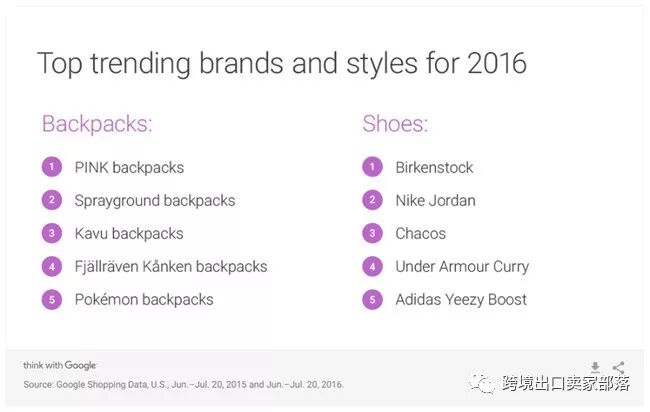 尽管2016年已经过去很久了,但这份榜单上的一些产品在2017年似乎还很流行。因此,卖家可以对过去流行的服饰、背包、鞋子和电子产品进行大范围的研究,预估一下2018年将会流行什么。