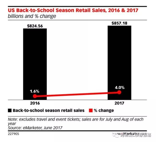 2016年返校季期间,美国电商交易总额达到了645亿美元, 2017年更是增长了14.8%,达到了740.3亿美元,这一数字相当于美国返校销售总额的8.6%(高于去年的7.8%)。