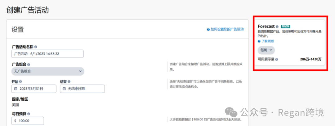 那么现在,当您创建展示型广告活动时,就可以获得有关展示量的预测数据,通过调整广告设置,直接看到效果的变化,帮助您在投资之前就预测到产出效果。