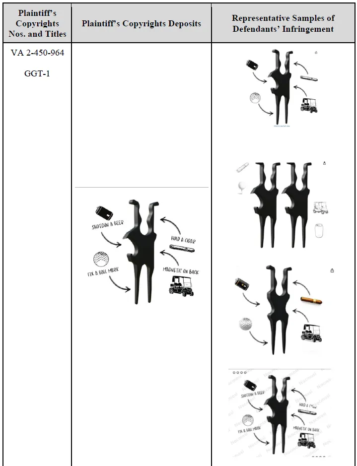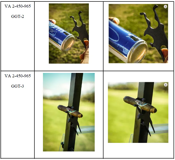 原告 Gimme Golf Tool LLC 是一家来自美国的创新高尔夫配件品牌,专注于打造兼具实用性与趣味性的高尔夫随身工具。它的诞生特别实在,创始人自己和球友们打球的时候发现:开罐瓶老费劲,雪茄没地儿放,还得随时修修打球留下的痕迹。于是Gimme Golf Tool 工具就此诞生,它既是开瓶神器,一按就能轻松开罐;又是个可靠的雪茄架,能稳稳卡在球车上或插在草地里。同时,它本身还是个标准的修草工具。