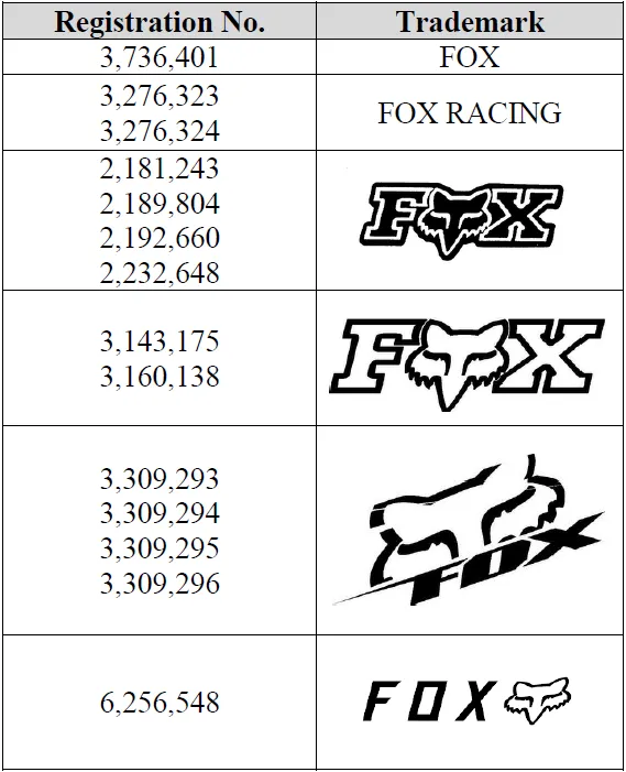 原告是一家总部位于加利福尼亚州欧文市的公司,自1974年起设计、开发并销售摩托车和山地自行车装备及服装。其Fox Racing品牌产品线涵盖运动装备、背包、服装等各类极限运动用品。