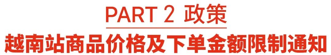 Shopee越南站跨境卖家请注意,越南站商品价格及下单金额限制更新!由于越南海关缩紧收税政策,目前Shopee已调整越南跨境卖家商品价格设置以及买家下单金额上限,调整后的金额限制如下。
