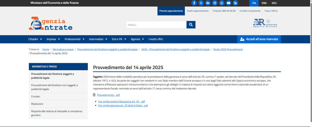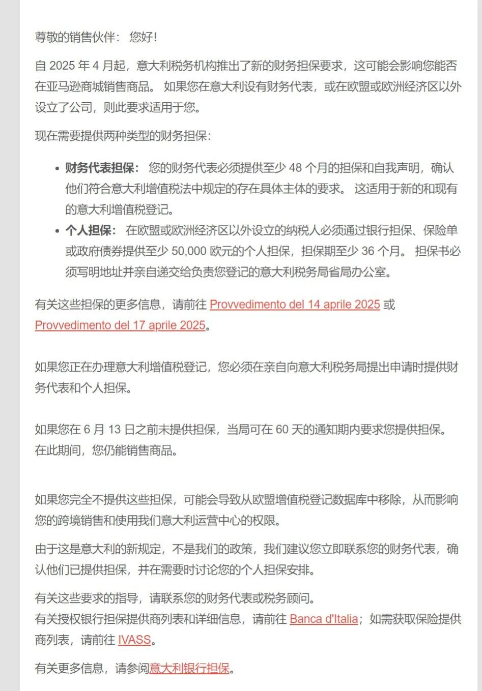 1.需要缴纳至少5万欧元的保证金。意大利税务局官方网站上提供了卖家缴纳保证金的具体规则以及相关附件。