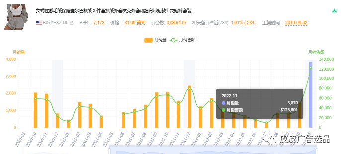 6:该服装是季节性产品,主打冬季。季节幅度明显,亚马逊定价 26.99$-32.99$,一个月销量单链接2000-4000单左右