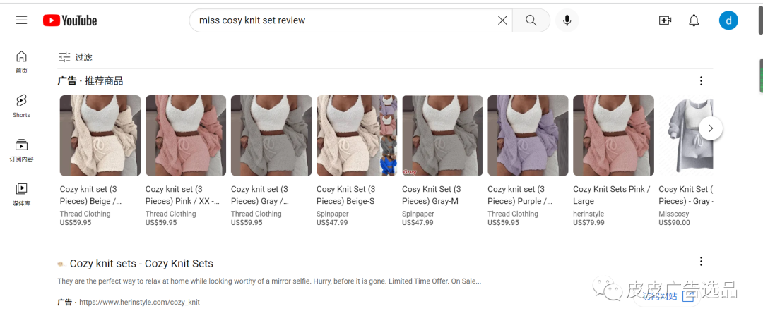 (2)Youtube上发现其他网站在进行广告投放该产品,而我们调研的网站并未投放