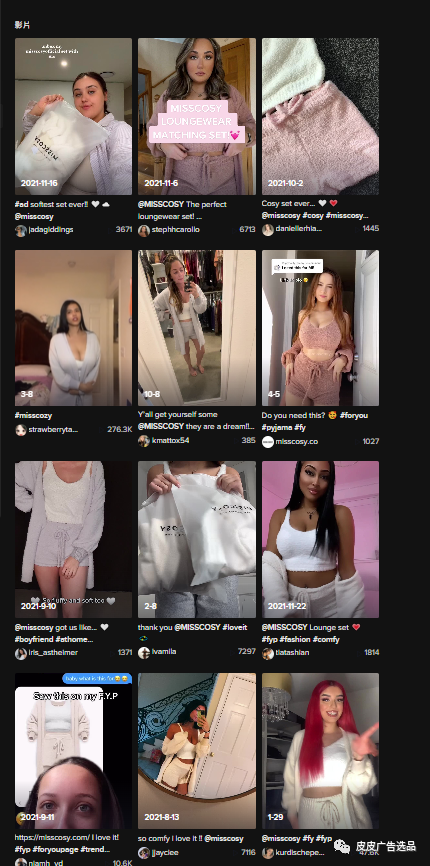 (2)有较多koc测品链路:koc视频-@tk账号missscosy -主页跳转独立站,该产品视频种草属性强