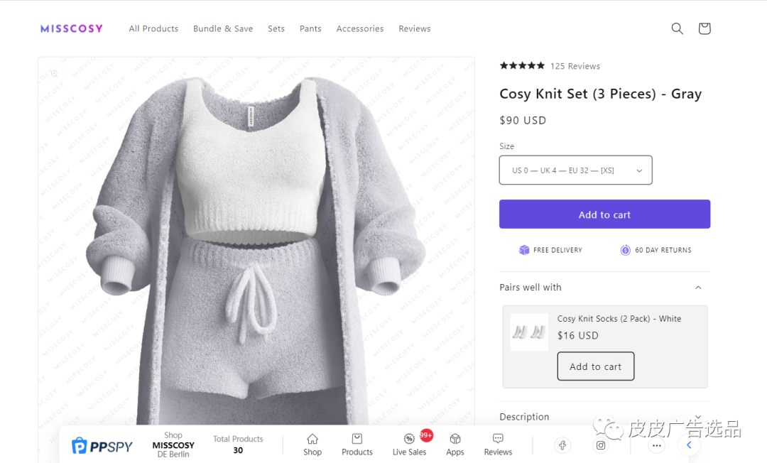 我们本周调研的是一个最近爆单,售卖冬季毛绒居家三件套 Cosy Knit Set 的垂直网站