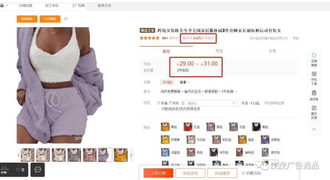 代入女性购买服装,该组合是直接由三件套组合。主要居家穿,消费者也会从舒适和宽松保暖等功能出发,不用考虑穿搭以及复杂化的问题,看到了觉得可以就买了,当消费者看到素材,减少了决策时间,有可能提高转化率,