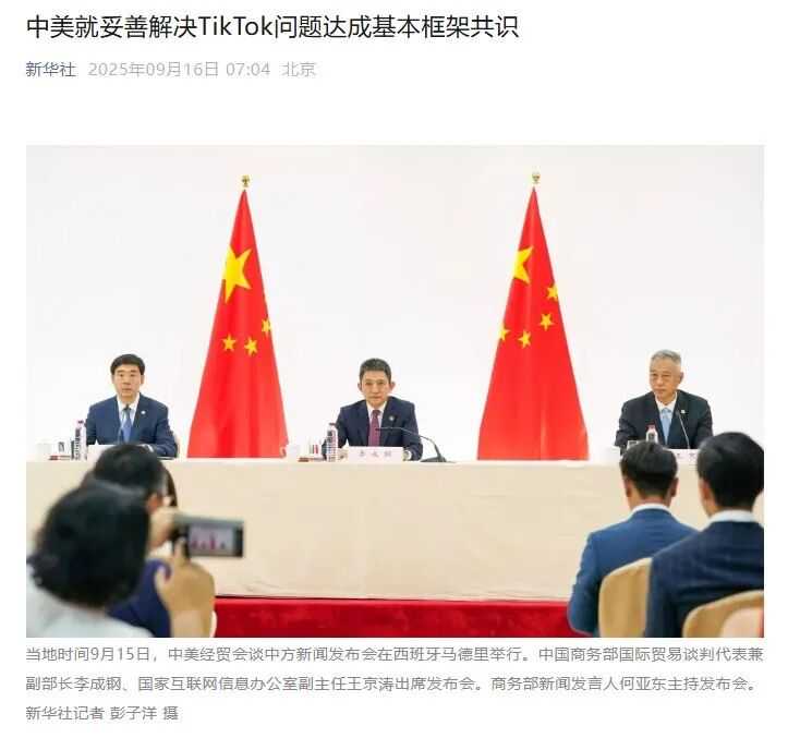中美就妥善解决TikTok问题达成基本框架共识