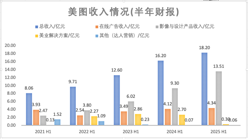 8 月 18 日,美图发布 2025 年上半年财报,收入 18.2 亿元,同比增长 12.3%,经调整归母净利润 4.67 亿元,同比增长 71.3%。