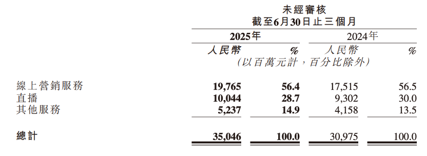 2、直播业务收入 100 亿元,同比增长 8%,但在整体收入上的占比进一步降低。