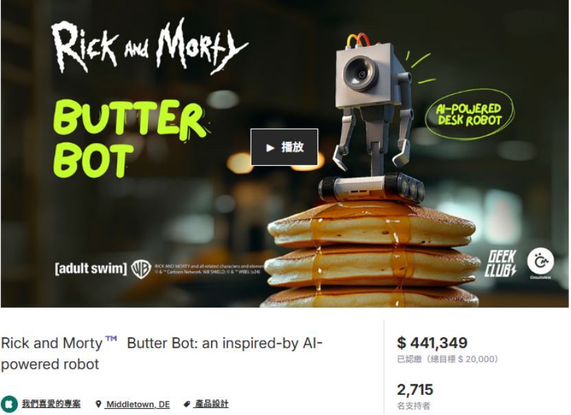 在 Rick and Morty 中,姥爷 Rick 发明过一个专门用来递黄油的小机器人,而 Geek Club 和 CircuitMess 将其从动画世界带入了现实生活,并在 Kickstarter 上发起众筹,单价 139 美元(超级早鸟价和早鸟价分别 99 美元和 119 美元),最终获得了近 3000 人支持,筹得 44 万美元。