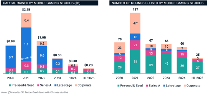最近几年,只要稍微关注游戏投融资市场的人就能发现,如今游戏厂商越来越难融到钱了。此前市场监测平台 InvestGame 的数据显示,全球手游厂商融资总额从 2023 年 Q1 就开始出现明显下滑,同比下降 74%,之后也一直没有起色。
