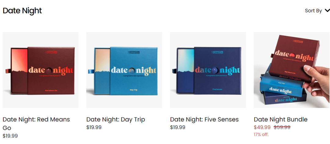 Date Night Adventure 是一个主打情侣互动和亲密关系增温的创意产品品牌,背后的公司为中国的Fengxian Chendian 有限公司。其核心产品为“约会冒险卡牌”,通过精心设计的一系列互动任务、惊喜创意和挑战,帮助情侣摆脱日常的无聊,增进感情,适合日常、节日、纪念日等场合使用,深受欧美年轻群体欢迎。