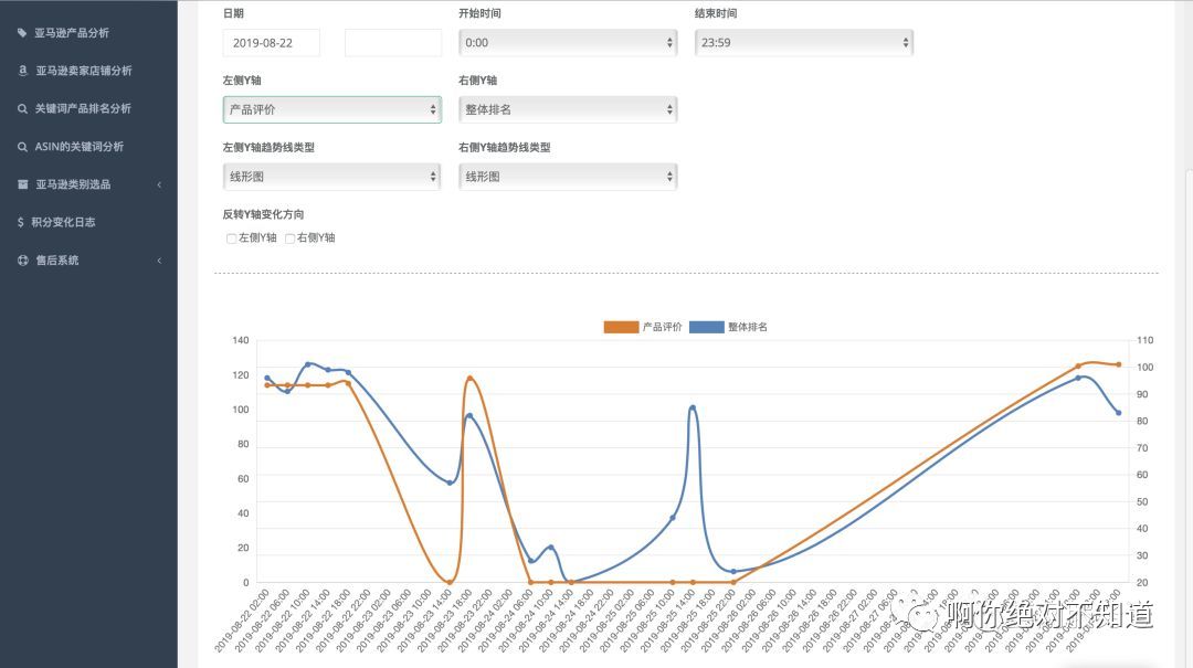 (上图:荟网系统对亚马逊自然排名与Review之间的曲线关系实时监控截图)