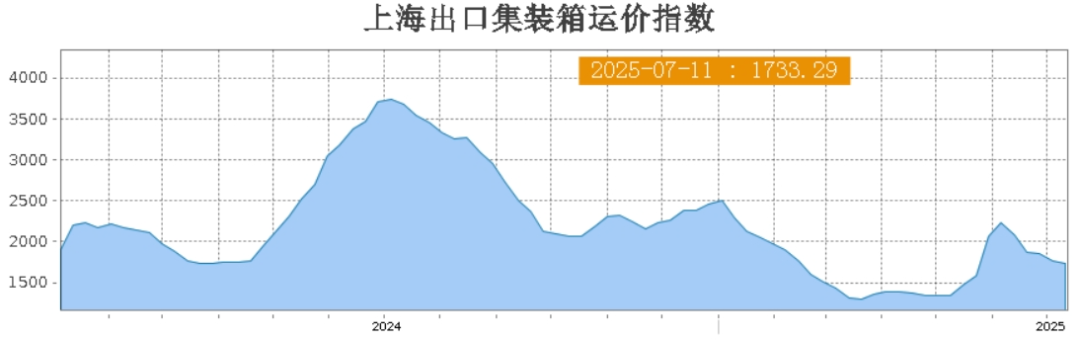 近期,上海航交所运价指数(SCFI)连续五周下跌。最新数据为1733.29点,较前一周下跌1.7%。