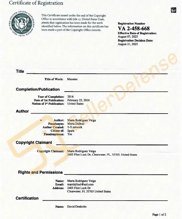 原告 Marta Rodriguez Veiga 是一位版画艺术家,以 Marta Dalloul 的名义在各种网站上销售其作品和以她的艺术作品为特色的珠宝、礼品、靠垫等产品。