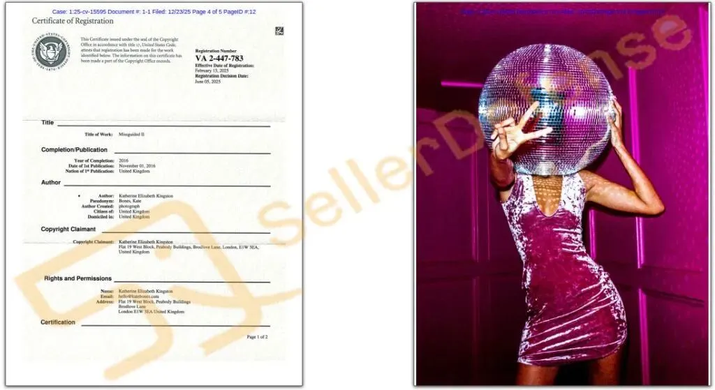 原告 Katherine Elizabeth Kingston 是一位摄影师和导演,艺名为 Kate Bones。原告作品曾广泛刊登于《Dazed》、《Wonderland》和《Love》等杂志,其商业客户包括耐克、Facebook等众多公司。