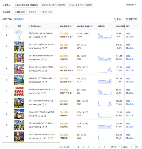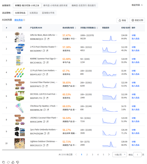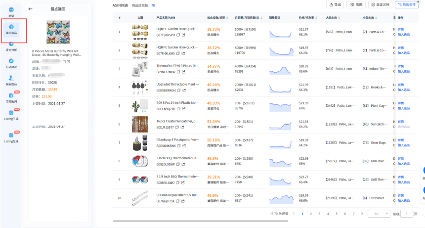 如果在上面的结果中没有看到很合适的ASIN,可以利用【锚点选品】,挖掘竞争情况相似但门槛更低、机会指数更高的产品;