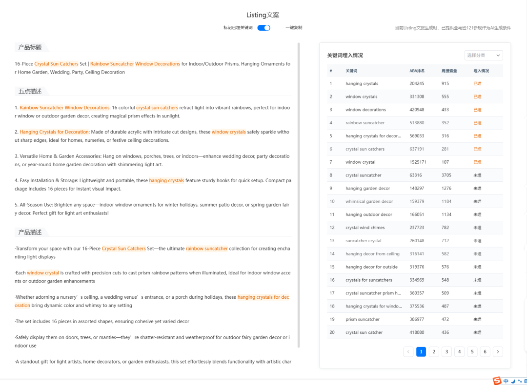 AI listing生成--基于关键词词库,高质量文案更流畅