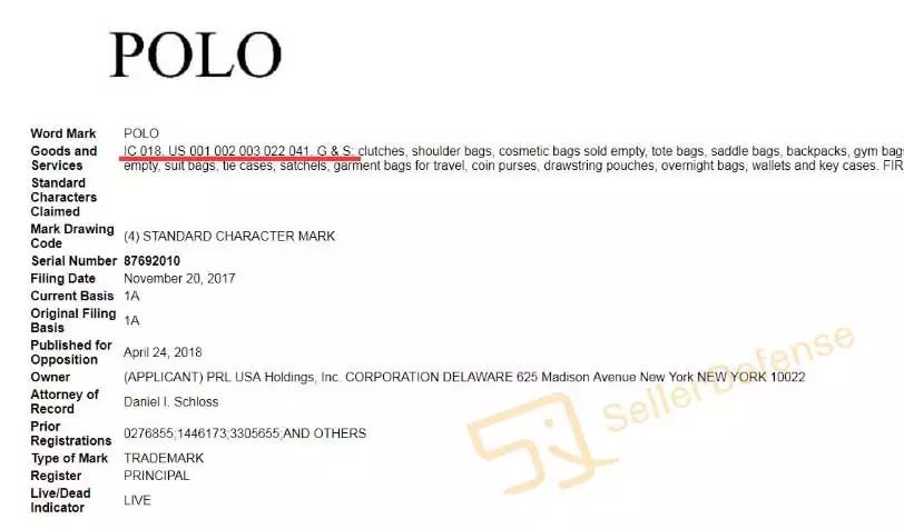 POLO 在英文中是马球的意思,Ralph Lauren是这个品牌的创始人,我们所熟悉的POLO衫是就是由他创造的。品牌商商标注册了大类025(服装鞋帽)、035(广告销售)、003(日化用品)、018(皮革皮具)、037(建筑修理)、041(教育娱乐)、043(住宿餐饮)等,几乎是注册了所有产品,涉及面很广。