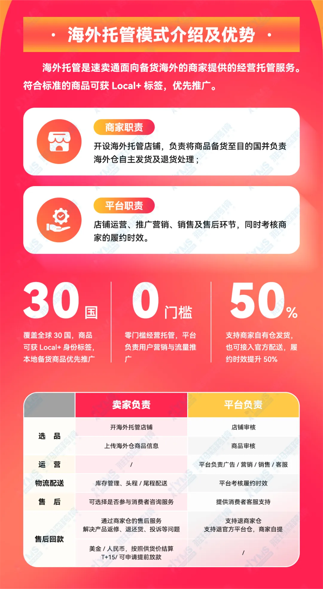 海外托管招募的商家是自行备货在本地且有本地履约能力的商家,商家的物流及费用商家自行承担。