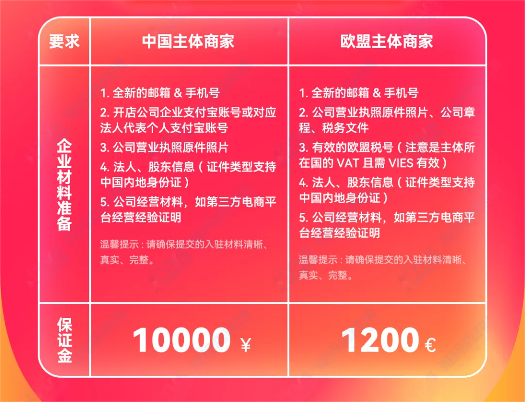 3、特别提醒欧盟及香港主体的商家:缴纳保证金时,必须使用和企业营业执照同名的对公银行账户(不能用个人卡,也不能用关联公司账户),请严格按保证金缴纳页面的指引完成打款,建议提前准备好这张卡,避免打款后因账户不符被退回。