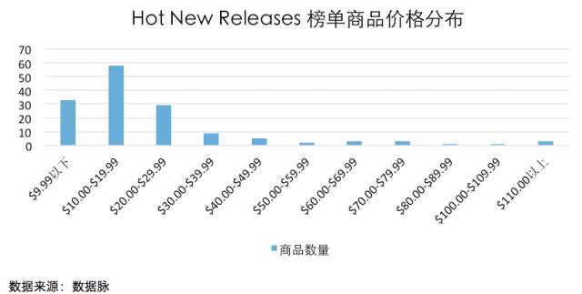 上周 Pet Supplies 品类 Hot New Releases 榜单商品最高价$129.95,最低价$2.59,平均价格$24.09。其中,有约31.87%的商品价格位于$10.00-$19.99区间内,另有3款商品价格超过$110.00,占比1.65%。