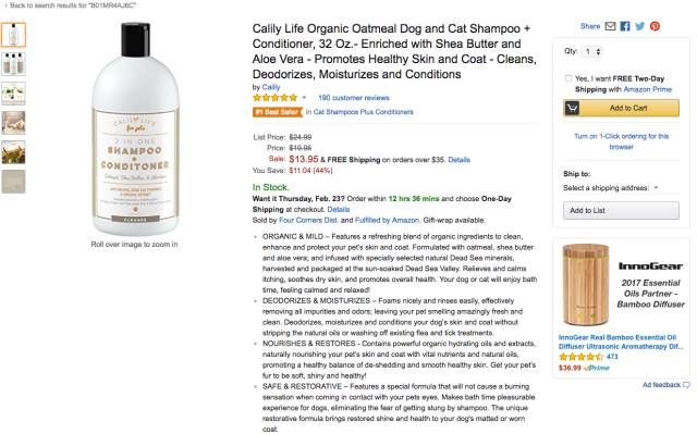 此外,该周中一款品牌为 Calily 的宠物洗发护理液产品也维持了榜单排名的良好涨势,在一周的七天中由榜单排名第14位成功上升至榜单排名第6位,且该产品拥有较好的口碑,平均评论星级4.9,后续市场潜力同样值得关注。