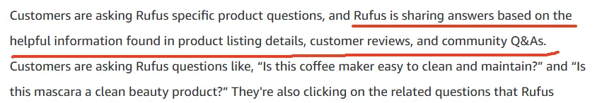 Rufus 从已知可靠的来源中提取信息,包括产品描述、评论、Q&A等地方提取所需的信息