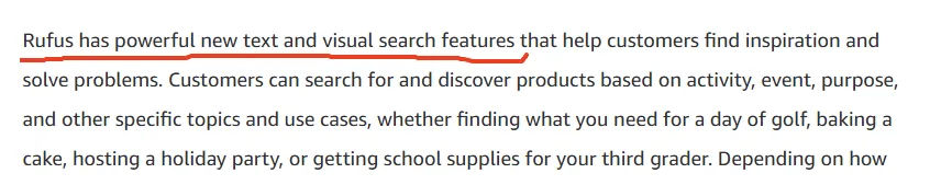 虽然 Rufus 是基于文本对话的,但也支持从图片中提取视觉标签(如使用场景、质感、体积),并与文本进行交叉验证