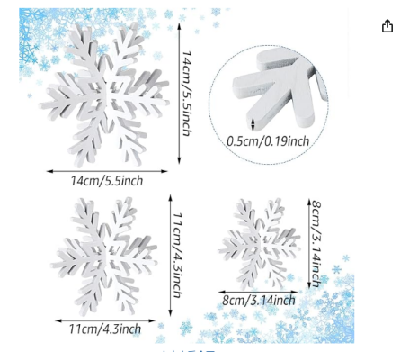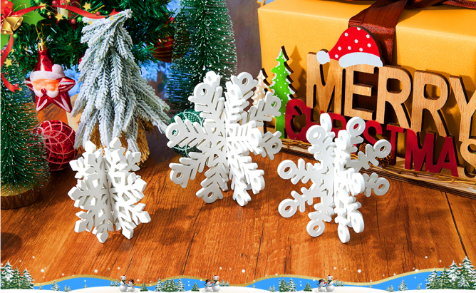 -摆放方式单一,希望赠送挂钩或贴纸,增加雪花布置的多样性;