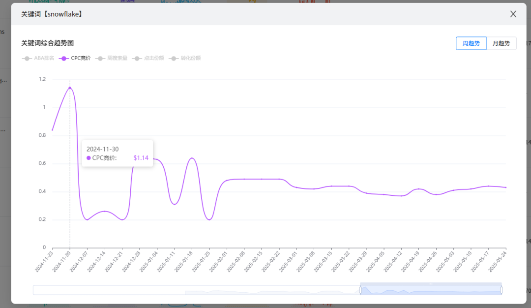 退货率低,cpc竞价不算高,近7天相关词搜索流量有所下降;