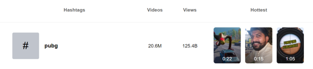 根据 Tikstar 的数据显示,目前全球最热门的 PUBG 在「TikTok」上的游戏视频量超过 2000 万,总播放量超过 1200 亿次。
