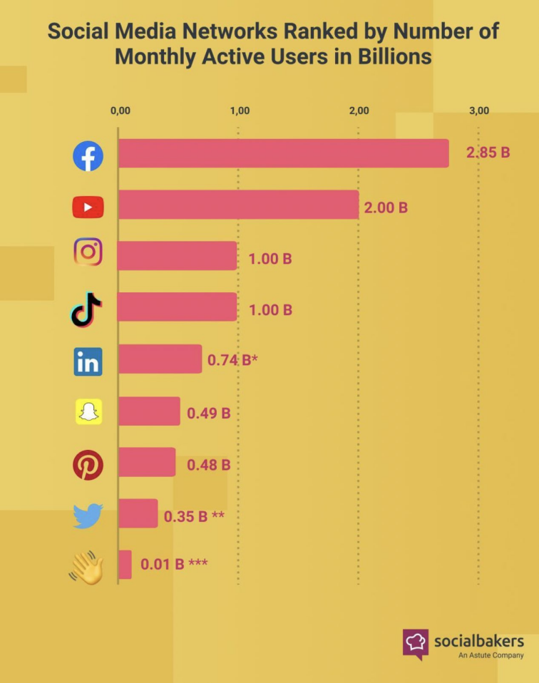 根据 Socialbakers 最新发布的数据显示,「TikTok」在全球的月活用户量达到 10 亿,几乎跟 Instagram 持平。