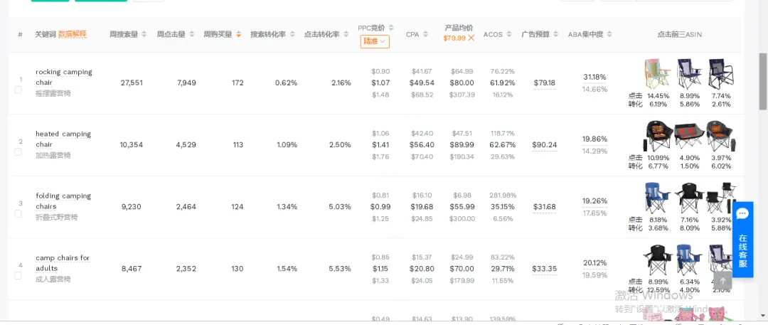筛高价值词:高转化关键词意味着买家需求更精准,把这类词放进 Listing 标题或广告组,能直接提升转化效率。 挖细分需求:对比不同关键词的转化率差异,能找到竞品没覆盖的痛点,比如 “rocking camping chair(摇摆露营椅)” 转化率达 9.14%,明显高于普通露营椅,说明摇摆功能是细分需求。 控广告成本:结合转化率和 ACOS 数据,能判断哪些词 “花钱值”,比如 ACOS 低于 20% 且转化率 3% 以上的词,可加大预算;ACOS 超 50% 的词,及时止损。 辅助选品决策:如果一个品类关键词转化率普遍低于 1%,说明市场竞争激烈或需求模糊,新手入行要谨慎。