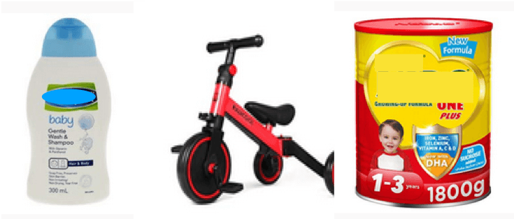 3.婴儿用品:在家带娃必备婴儿洗浴用品、玩具、纸尿布、奶粉、玩具、手推车等。