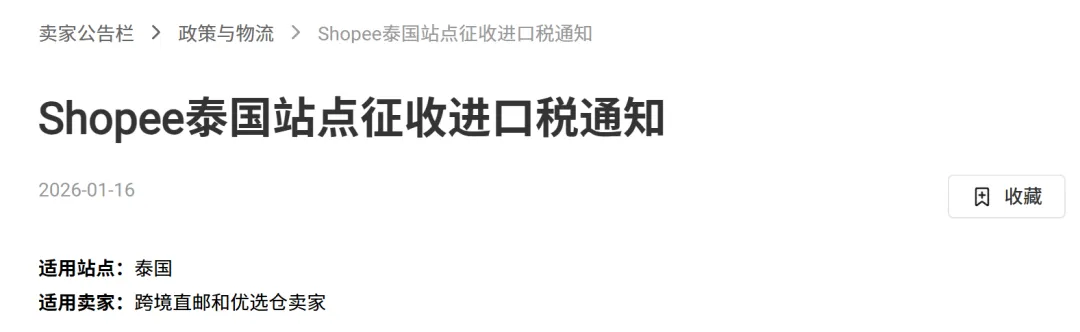 Shopee,TikTok Shop发布征收关税通知