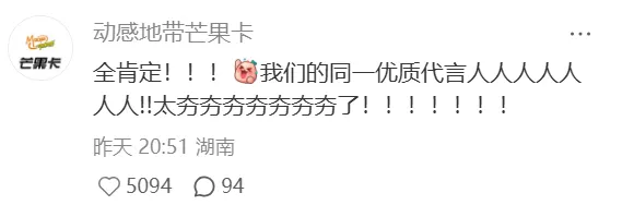此外,评论区的亲友团还在增加,时代少年团代言的另一个品牌动感地带芒果卡也到评论区来寻亲: