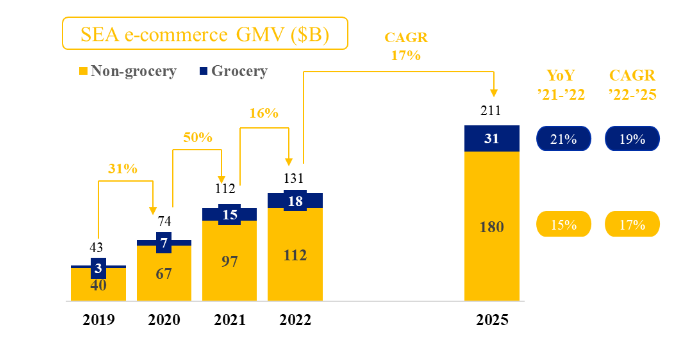 近年来,随着东南亚电商市场持续扩容,兴趣电商也在东南亚这个新兴市场兴起。据谷歌、贝恩和淡马锡联合发布的2022年东南亚互联网经济报告显示,2022年东南亚电商GMV预计为1310亿美元,到2025年东南亚电商规模将达2110亿美元。更重要的是,东南亚用户对移动互联网逐渐产生较高依赖,超过90%的东南亚互联网用户使用智能手机访问互联网,平均每天使用移动互联网3.6小时。