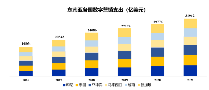 于是,为了进一步抢占东南亚市场的电商份额,越来越多的电商企业越来越重视数字营销,开始将短视频或直播作为主要营销方式来实现更多的消费者触达和销量转化。根据We Are Social数据东南亚五国的数字营销支出同比增速在9%-16%之间。