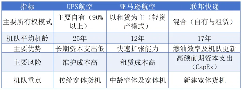通过将UPS模式与高利用率航司进行对比,我们可以清晰地看到为什么老旧机队能够完美契合隔夜快递这一细分市场。