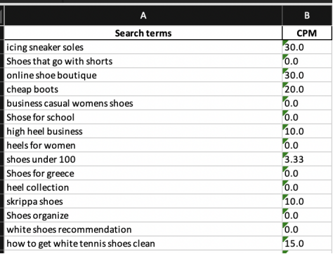 除此之外,TikTok 还将为广告主提供“搜索词列表”。商家可以提取已转化广告的搜索词,查看各个搜索词的CPM(千次曝光成本)。