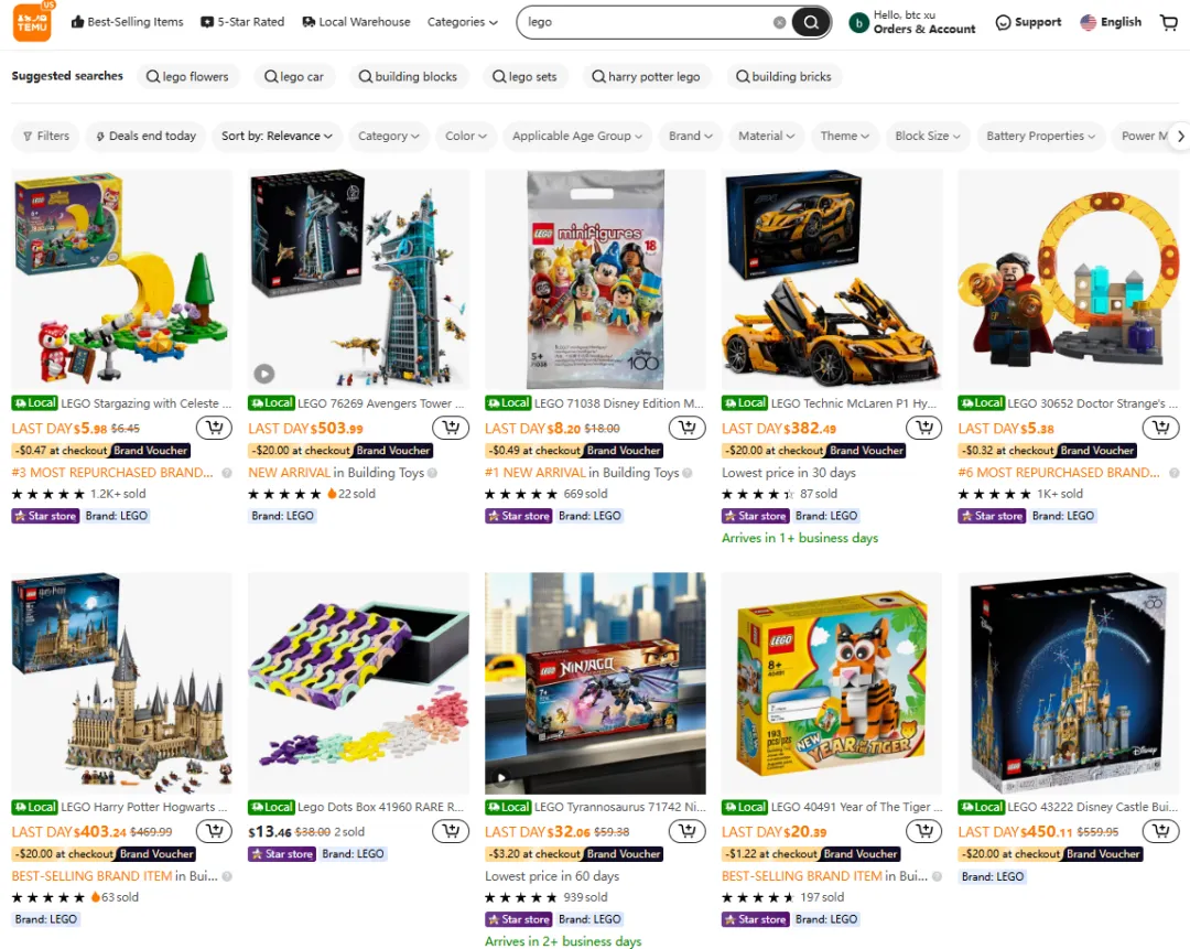乐高一直以来坚守高端路线,产品定价相对较高,而 Temu、Shein 等平台在全球市场是公认的靠“低价”营销,平台内的价格补贴和内卷模式,导致正品乐高陷入低价竞争,严重稀释其数十年积累的品牌溢价。