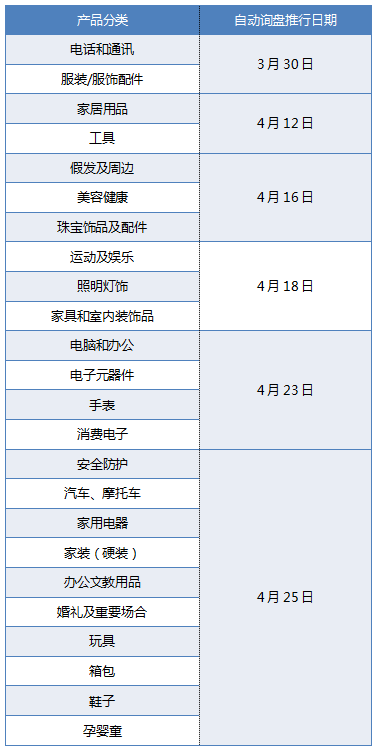 接下来,供应商平台系统会陆续在不同时段上线对应品类的接单功能。请各位供应商密切留意各自品类逐步参与询盘的时间: