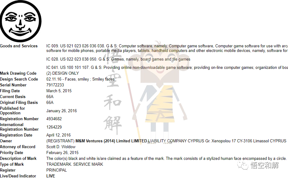 原告公司M&M Ventures (2014) Limited LIMITED一共注册了以下几个商标: