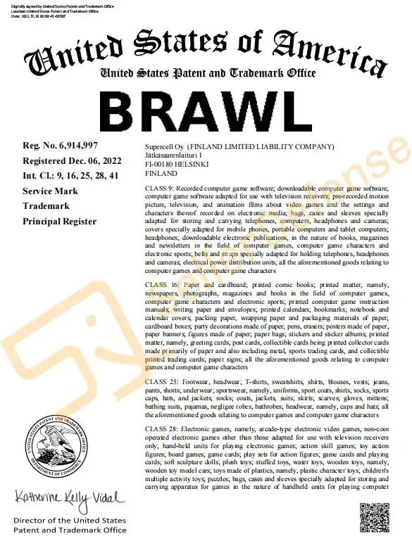 原告 SUPERCELL OY 是芬兰一家全球领先的游戏开发公司,致力于设计和开发引人入胜的多人游戏和社交游戏。BRAWL STARS 荒野乱斗是一款多人游戏,玩家可以选择拥有特殊技能的角色,运用策略和团队合作与其他玩家进行战斗。本案涉及商标注册在多个类目,请相关卖家注意排查避雷!