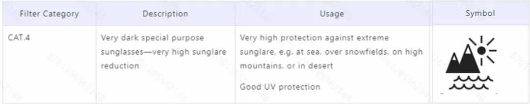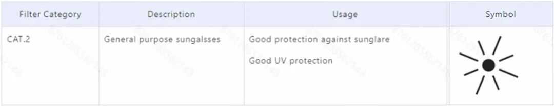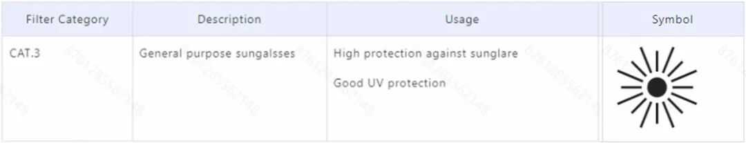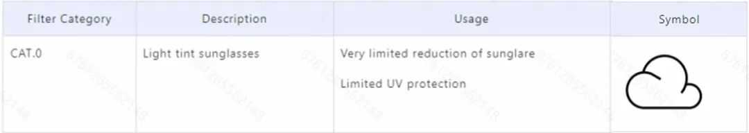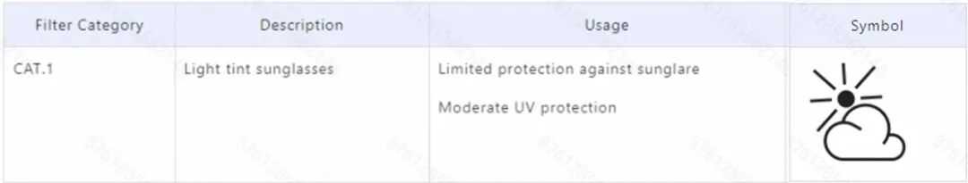 (5)以符号和/或文字描述的方式随附太阳镜提供滤光片类别说明信息。参考示例如下。
